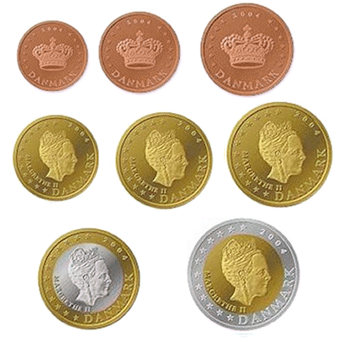 In 2000 heeft het Deense volk per referendum gestemd tegen invoering van de euro.In 2004 heeft de Bank van Denemarken aan de Nationale Munt gevraagd een serie euromunten te ontwerpen. Ze zijn nooit in circulatie gebracht, zelfs niet als proef munten. In december 2009 heeft de Deense premier aangegeven dat Denemarken niet voldoet aan de politieke nog aan de economische condities om een nieuw referendum te overwegen. |